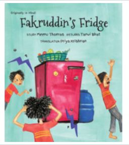 Fakruddin’s Fridge by Meenu Thomas and Tanvi Bhat is about little Fakruddin worrying about everything and asking endless questions. One day, when his fridge stops working, Fakru is frantic! How will he survive a hot summer without cold water? Ammi says: “Think of a way out yourself,” A light-hearted story with cheerful watercolor illustrations which bring alive the ambiance of Fakru’s neighborhood in Bhopal city.